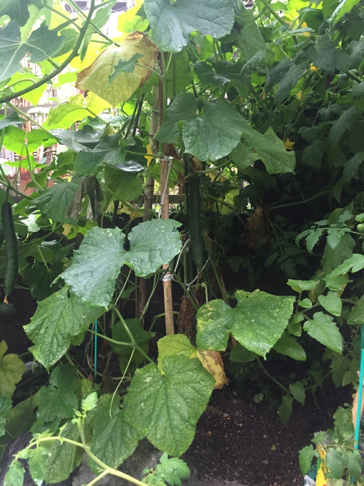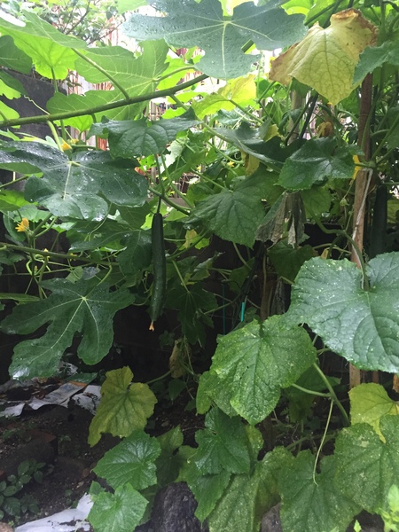 きゅうりは食べごろ数本できてます