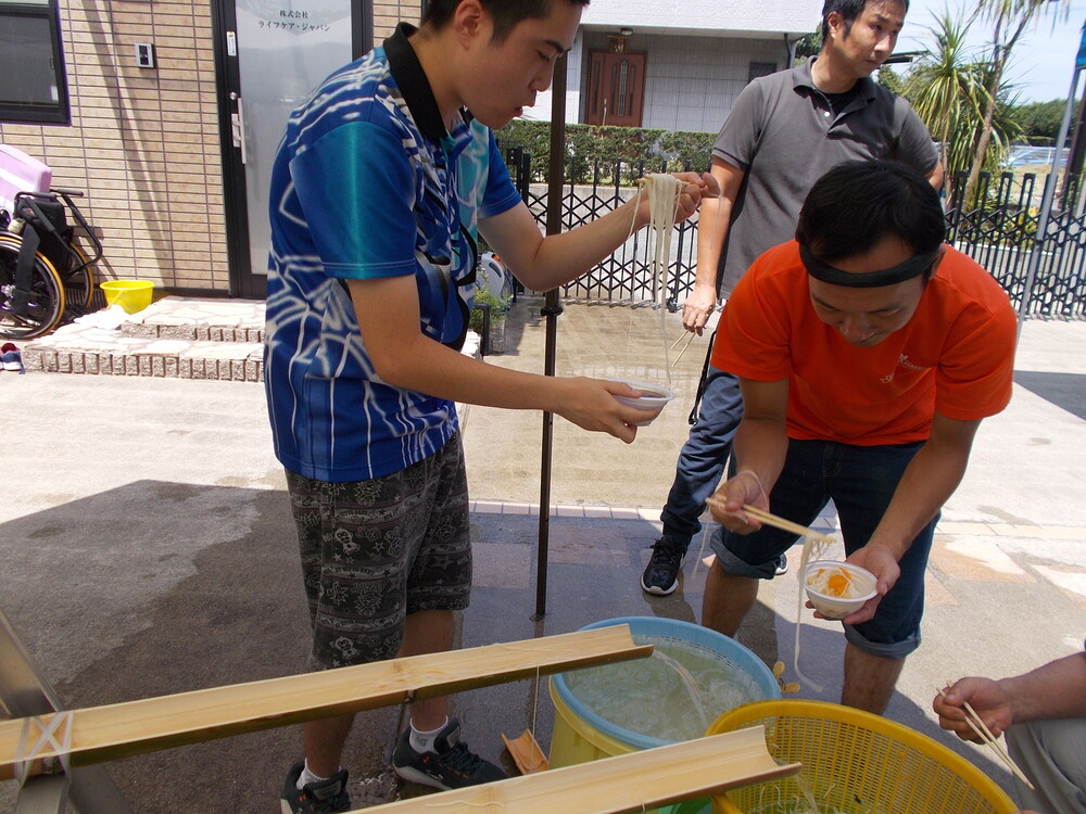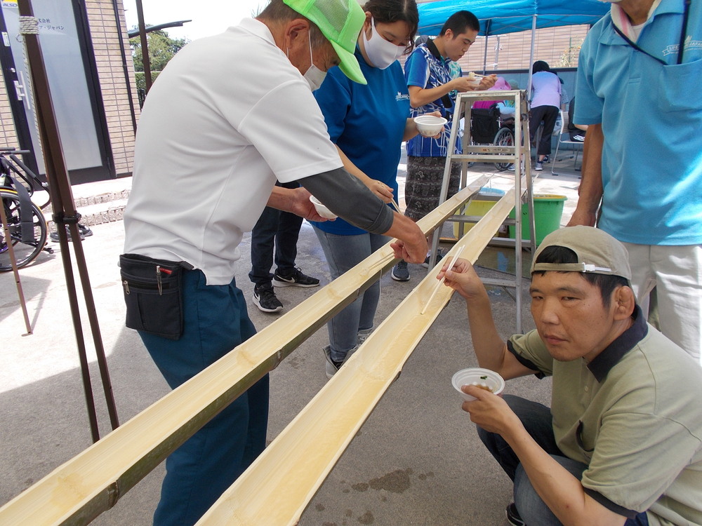 当施設での日常やイベント、お知らせなど 流しそうめん♬ ライフケアジャパンの流しそうめん大会が実施されました。 今回は、職員、利用者合わせて94名という大勢の方に参加していただきました。 2020.8.18 カテゴリー